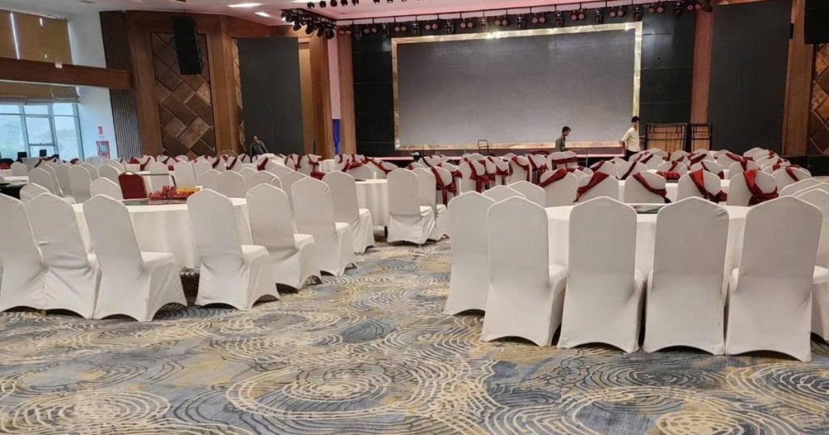Toàn cảnh hội trường khách sạn Mường Thanh Cần Thơ sau khi hoàn thiện thảm trải sàn cao cấp, không gian sang trọng và đồng bộ.