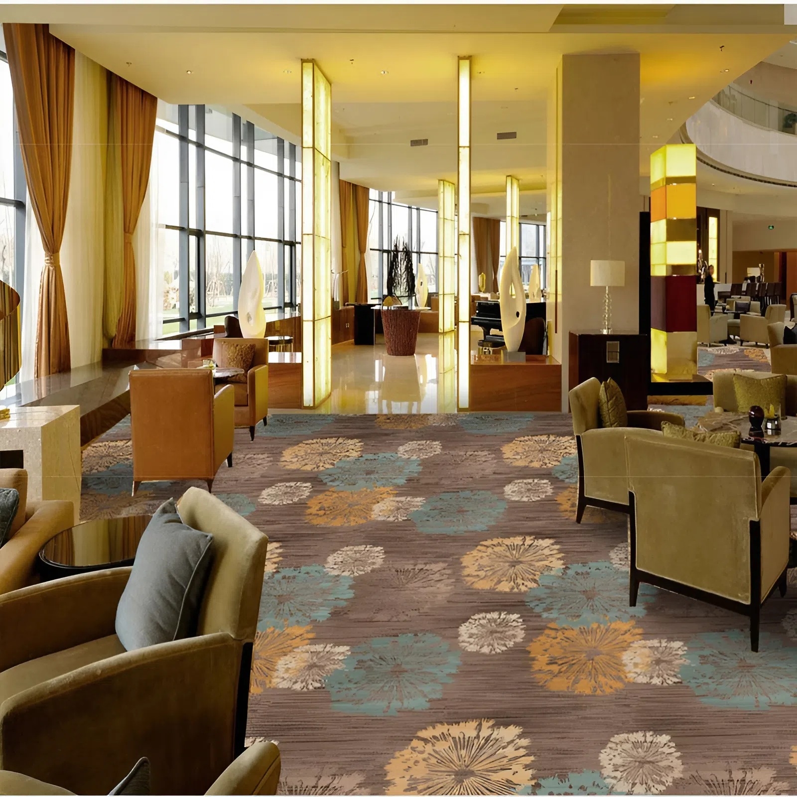 Thảm là lựa chọn lý tưởng cho những không gian yêu cầu sự yên tĩnh và cảm giác thoải mái. Nhờ cấu tạo từ sợi dệt mềm mại, thảm có khả năng giảm tiếng ồn, hấp thụ âm thanh tốt hơn hẳn các loại sàn cứng. Đây là lý do thảm thường được sử dụng tại khách sạn, phòng hội nghị, phòng làm việc cao cấp hoặc các khu vực nghỉ ngơi trong resort – nơi mà trải nghiệm âm thanh đóng vai trò quan trọng.